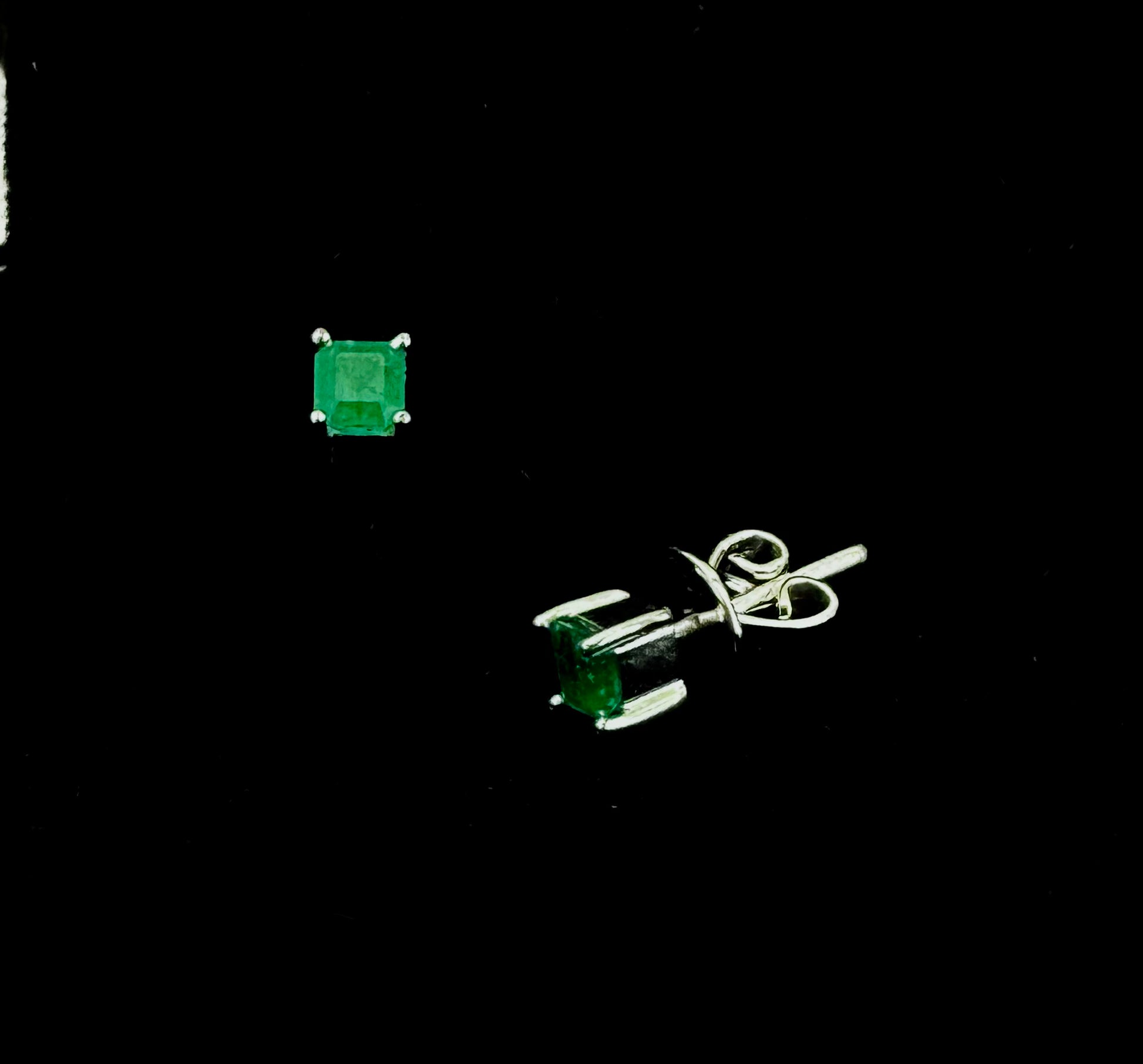 Aretes oro 18k blanco esmeralda 2,03gr / 4mm