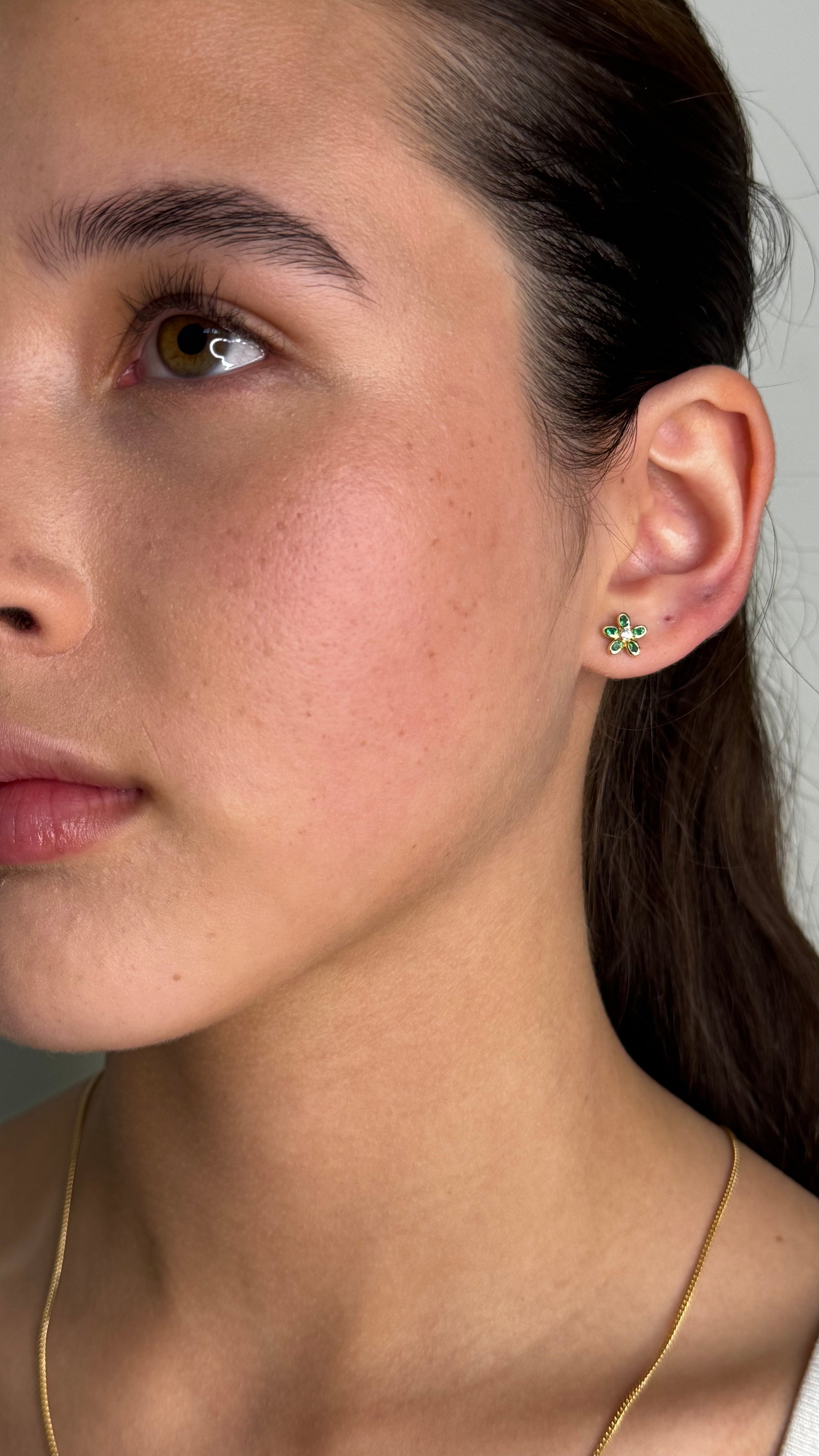 Topos Flor Circon Verde 0.75gr / 8mm Oro Amarillo 18K