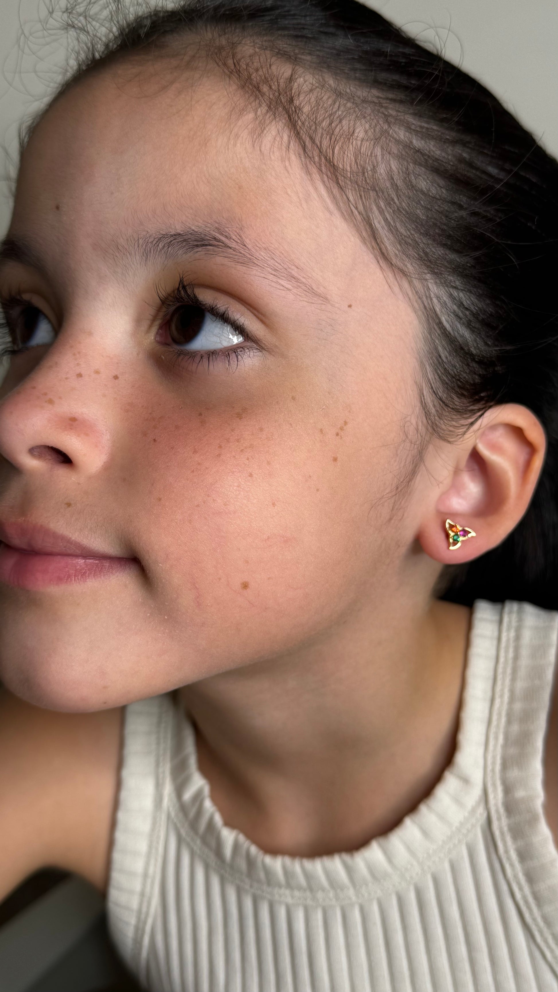 Topos Molino 1.3gr / 8mm Circon Verde Rosa Y Naranja Oro Amarillo 18K *