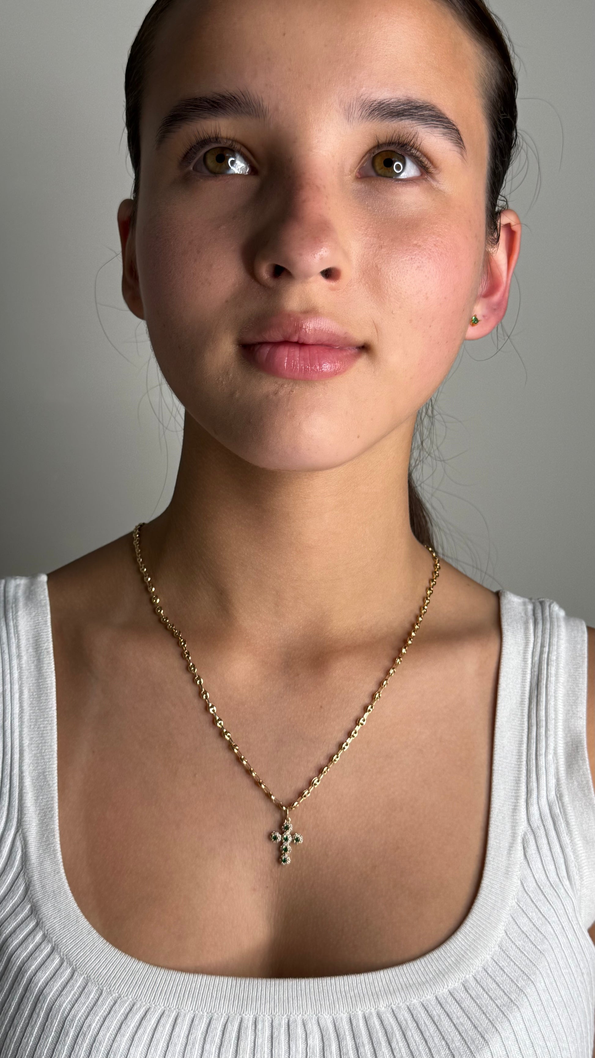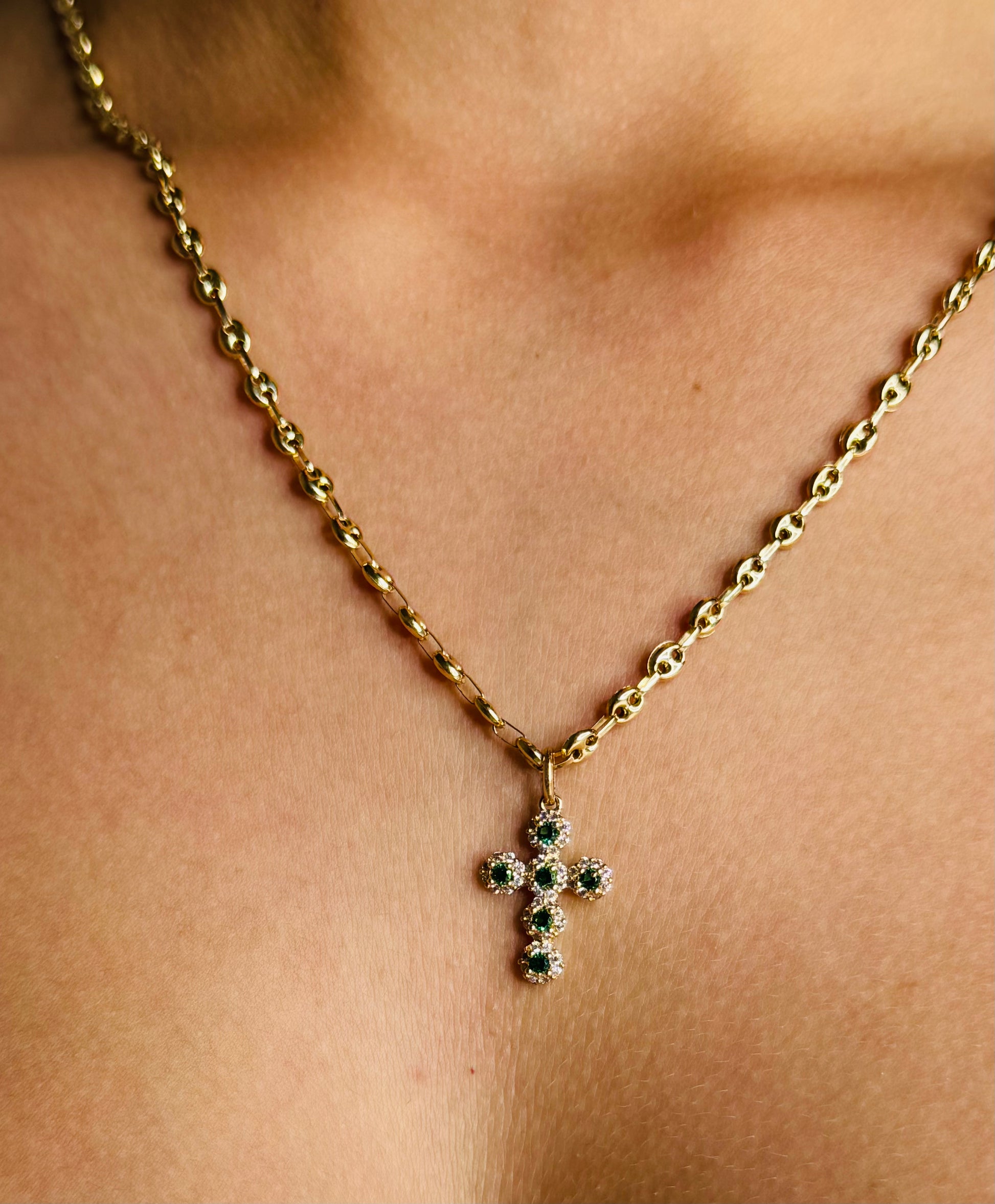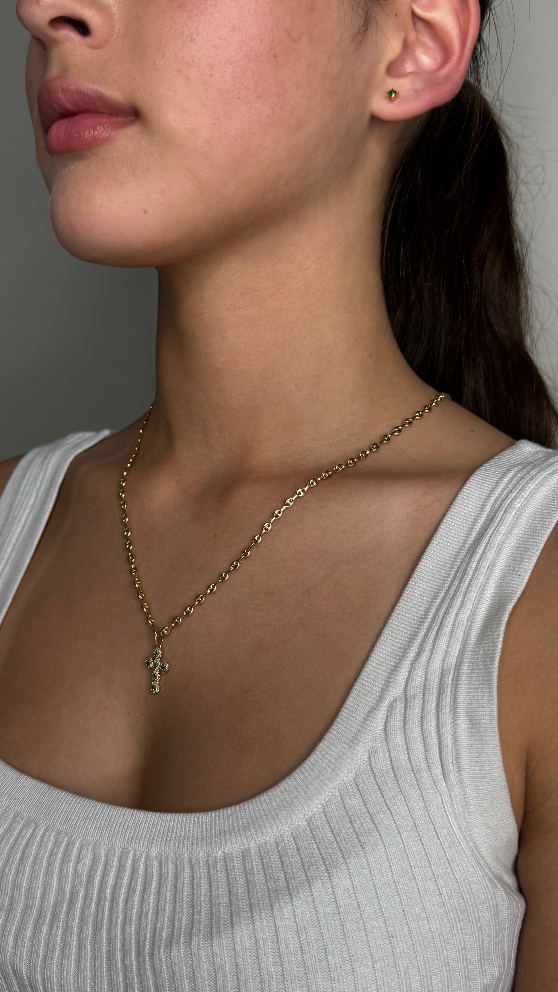Dije Cruz Tupida Circon Verde 1.4gr / 2.3cm / Oro