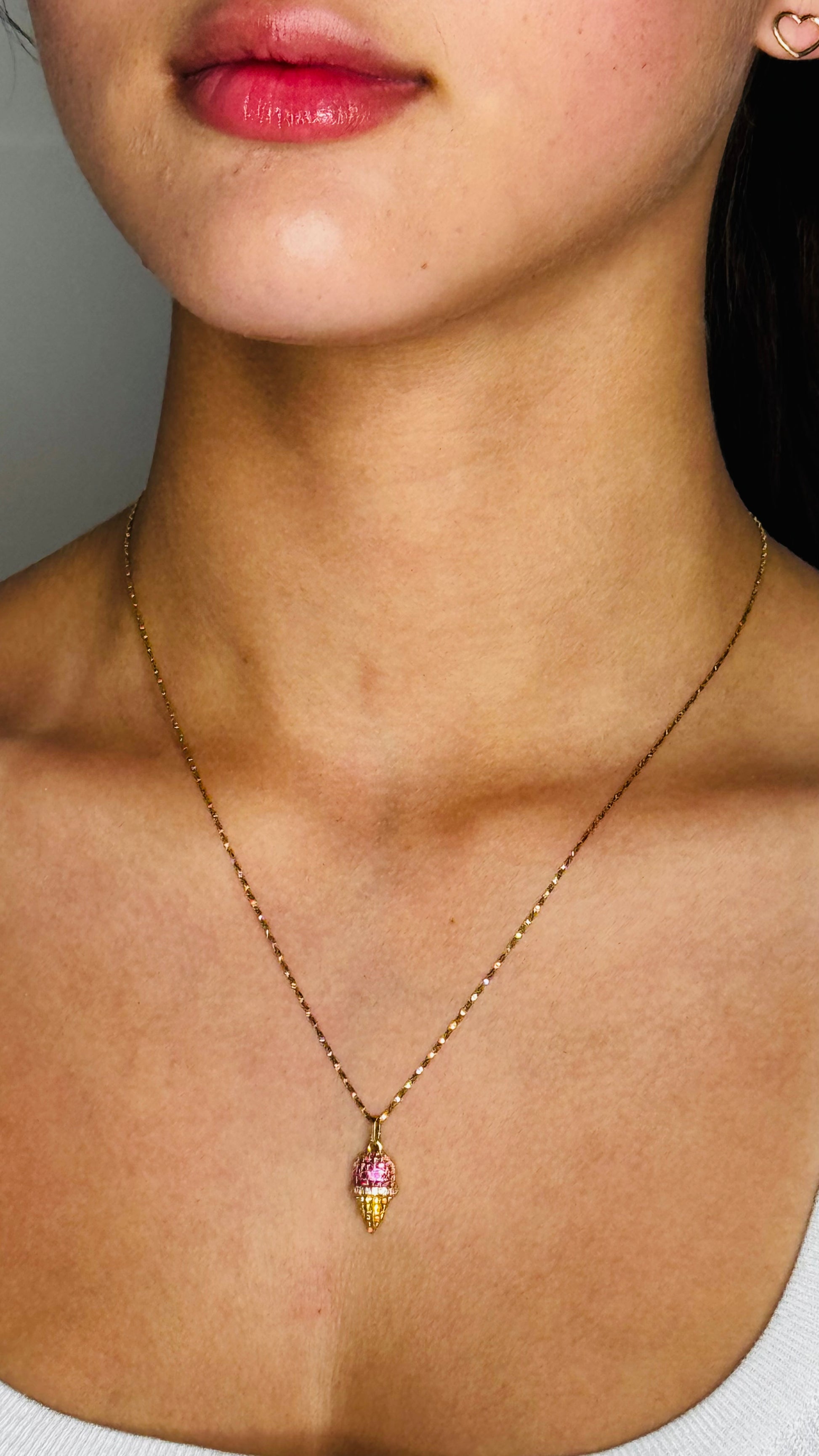 Dije Helado 1.6gr / 2.1cm / Circones Fucsias Blancos Oro Amarillo 18K *